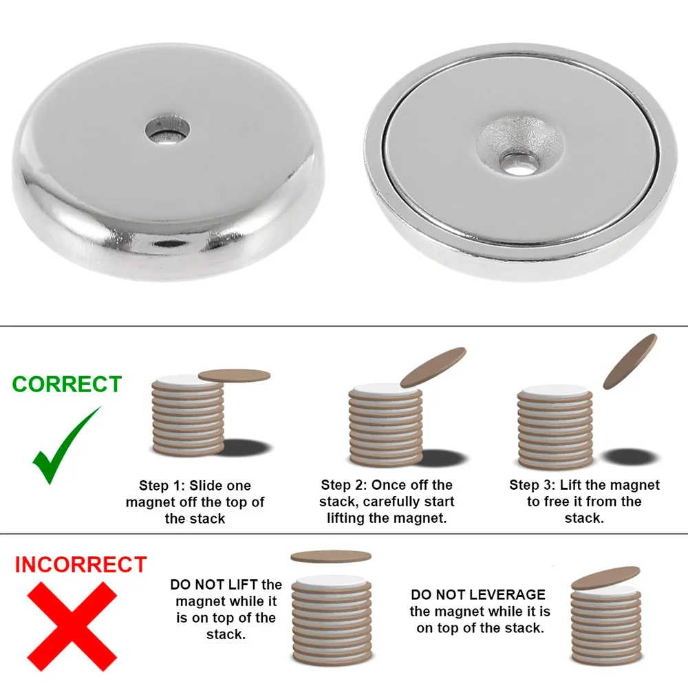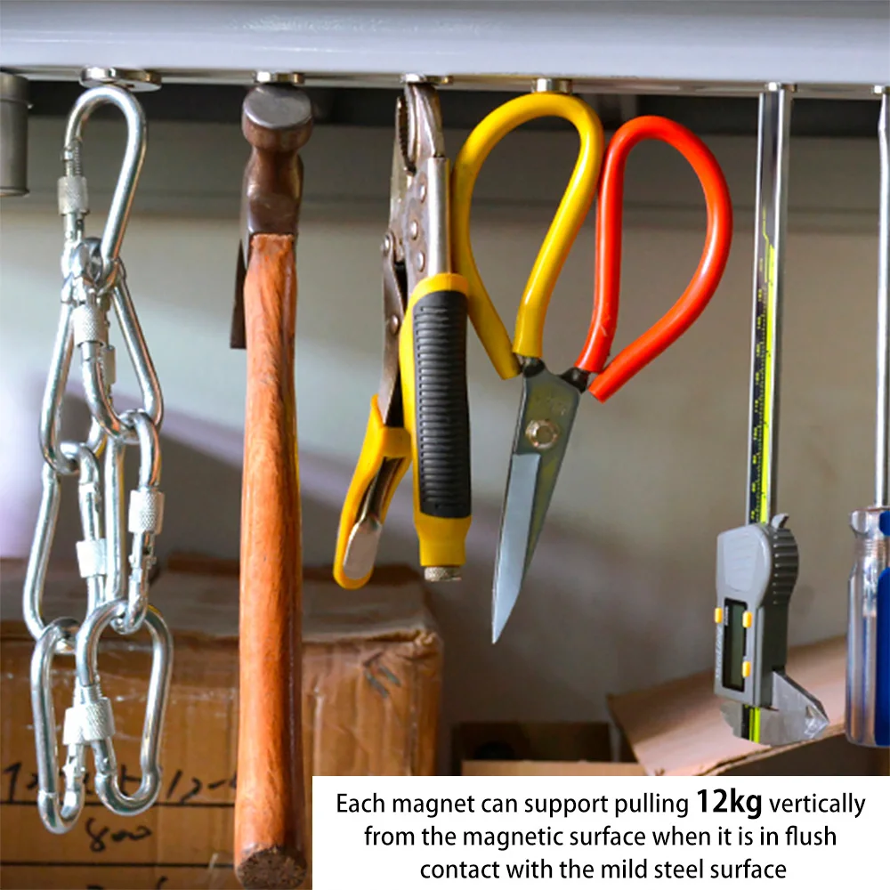 2.Small but powerful: made of strong neodymium magnets. Unbelievably maintain the size of the force. Each magnet can support 12 kilograms vertically pulled from the magnetic surface when it is in flush contact with the mild steel surface.