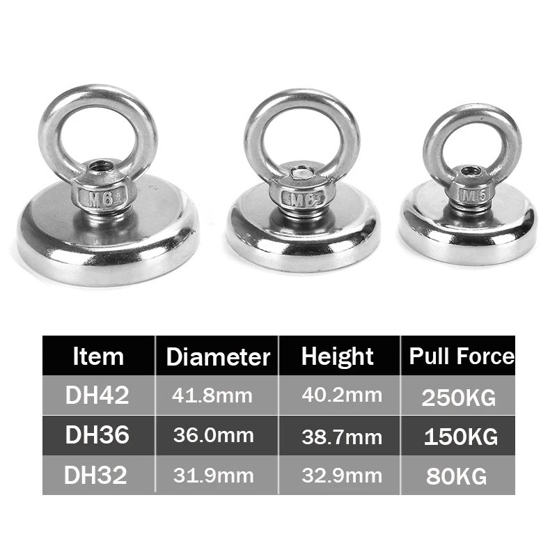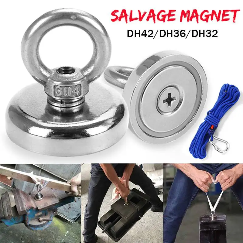 | Feature: Brand new and high quality. Great for recovering keys down a drain or overboard a boat These magnets are very strong for their size, they will literally JUMP out of your hand when attracted to other magnets or metal. Special care always needs to be taken when handling. Small size,magnetic permanent, long service life. Specifications Material: NdFeB Magnets and 304 Steel Plate Weight: 205g/298g/332g MAX Pull Force:250KG/150KG/80KG Diameter: 31.9MM/36MM/41.8MM Length of Rope: 10m*6mm Color of Rope: Dark Blue Package: 1x Salvage Magnet 1x Rope |