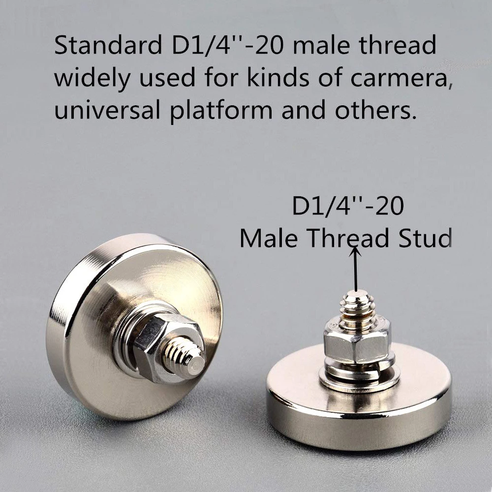 2PC 42KG Super Powerful Neodymium Disc Magnet Male Thread 1/4″-20 Heavy Duty Magnetic Mount for Gopro Hero Led Lights Camera