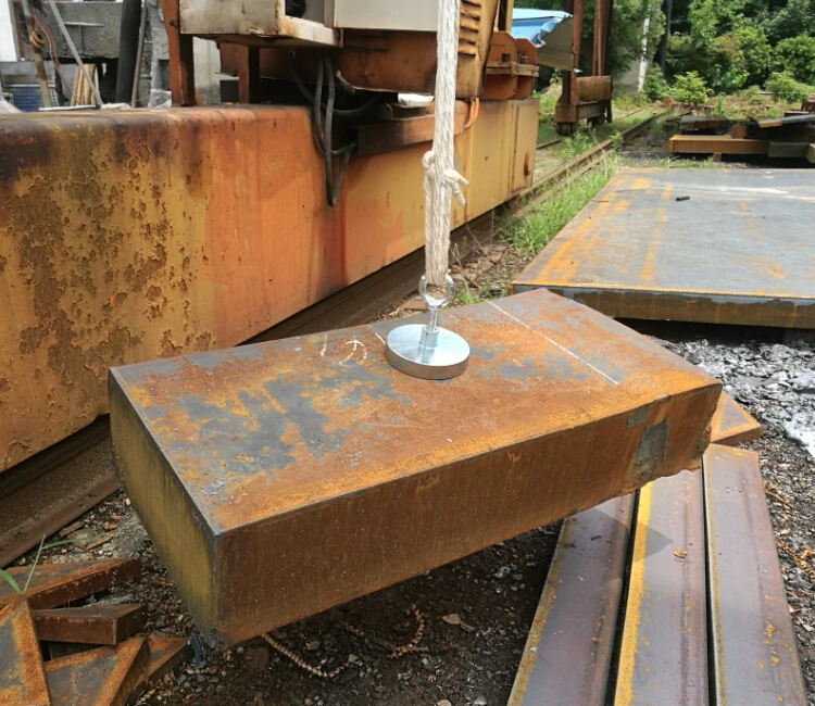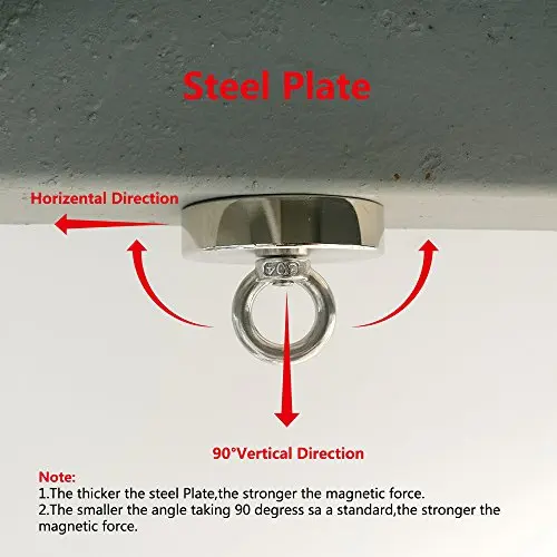 1.The magnetic pull force 450kg was tested using a computer-controlled tensile tester, it is the vertical pull-force which make the fishing magnet pull way from the steel plate 30mm thickness under ideal condition. The actual pull force will vary mainly depending on the following variables: