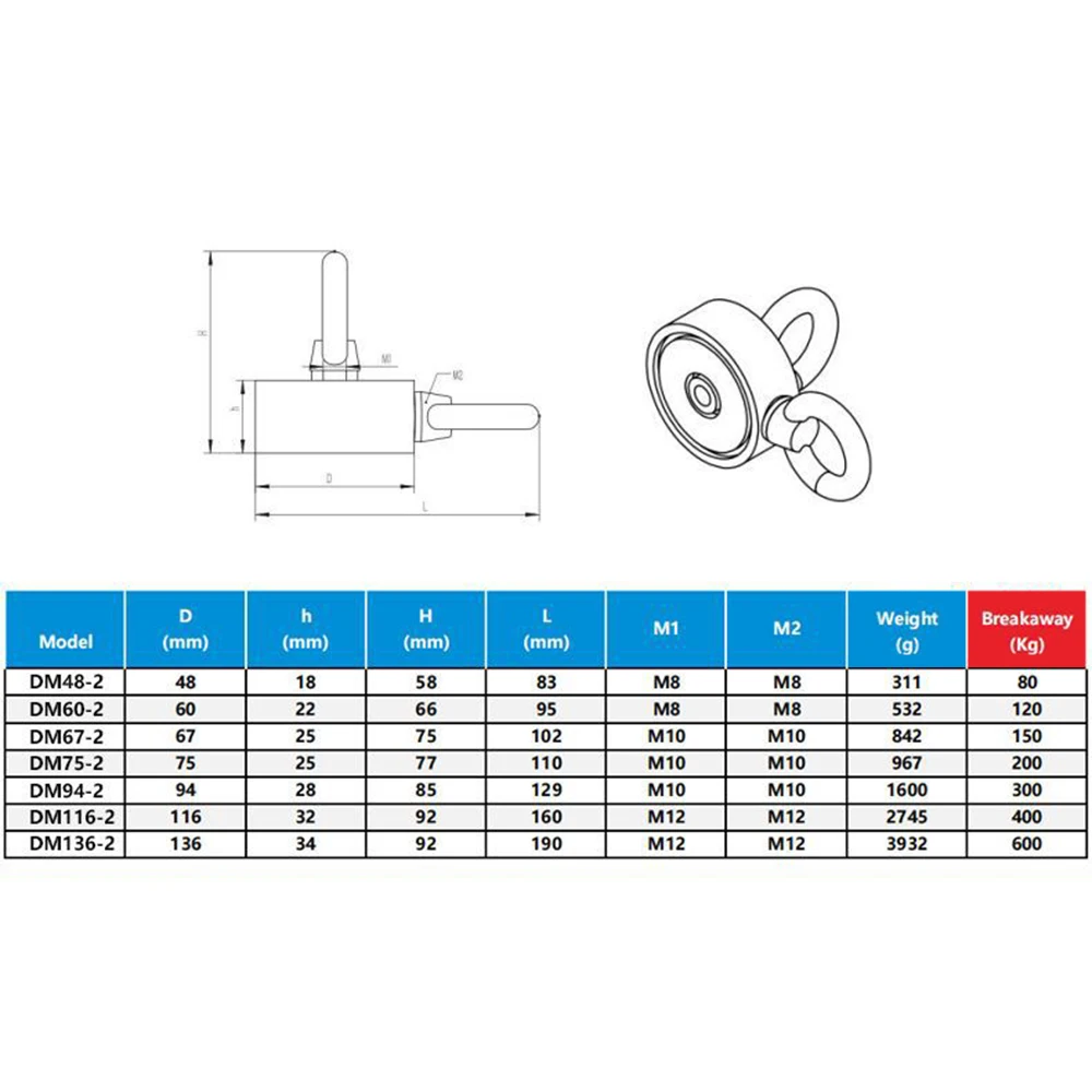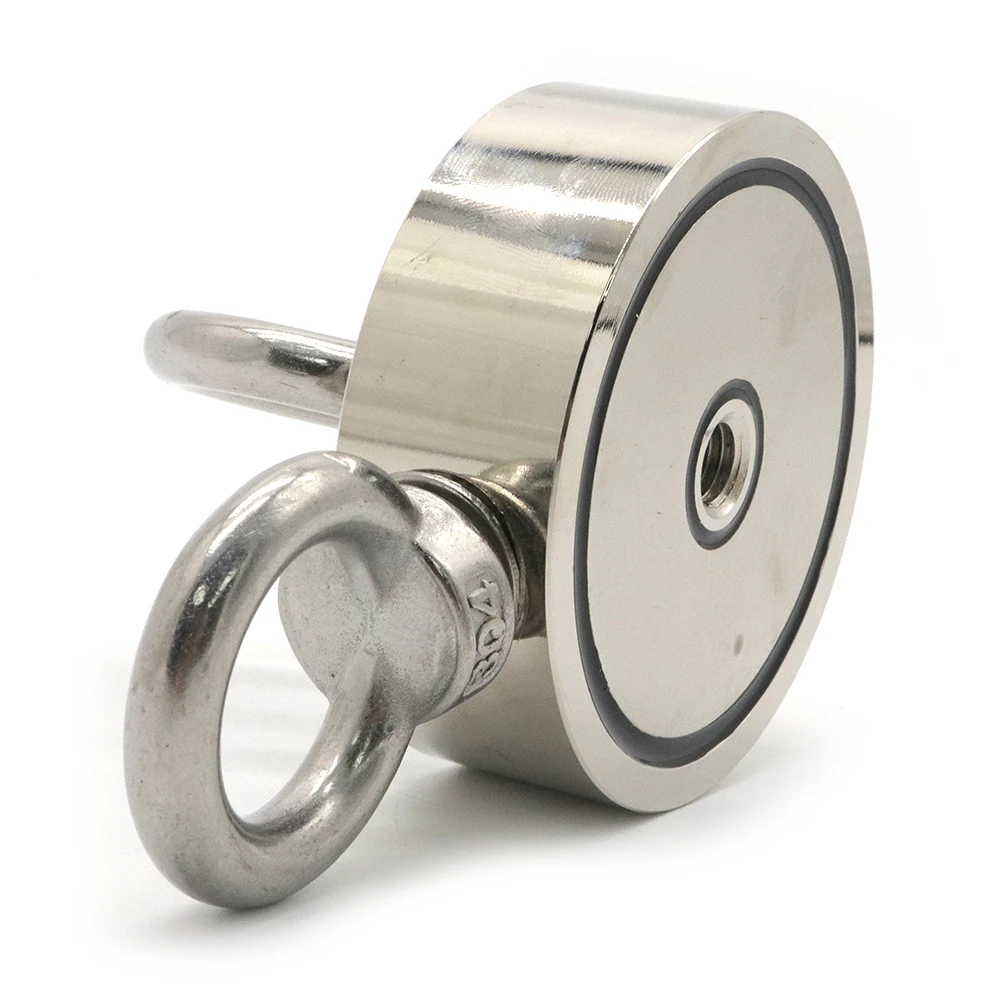 Double Side l-Unique two threaded holes design. Screwing eyebolt into the center hole is suitable for lifting vertically ferrous objects from well, bridge, boat and others; the side hole is great for trawling the bottom of the river, reservoirs, lake for iron metal or treasures.