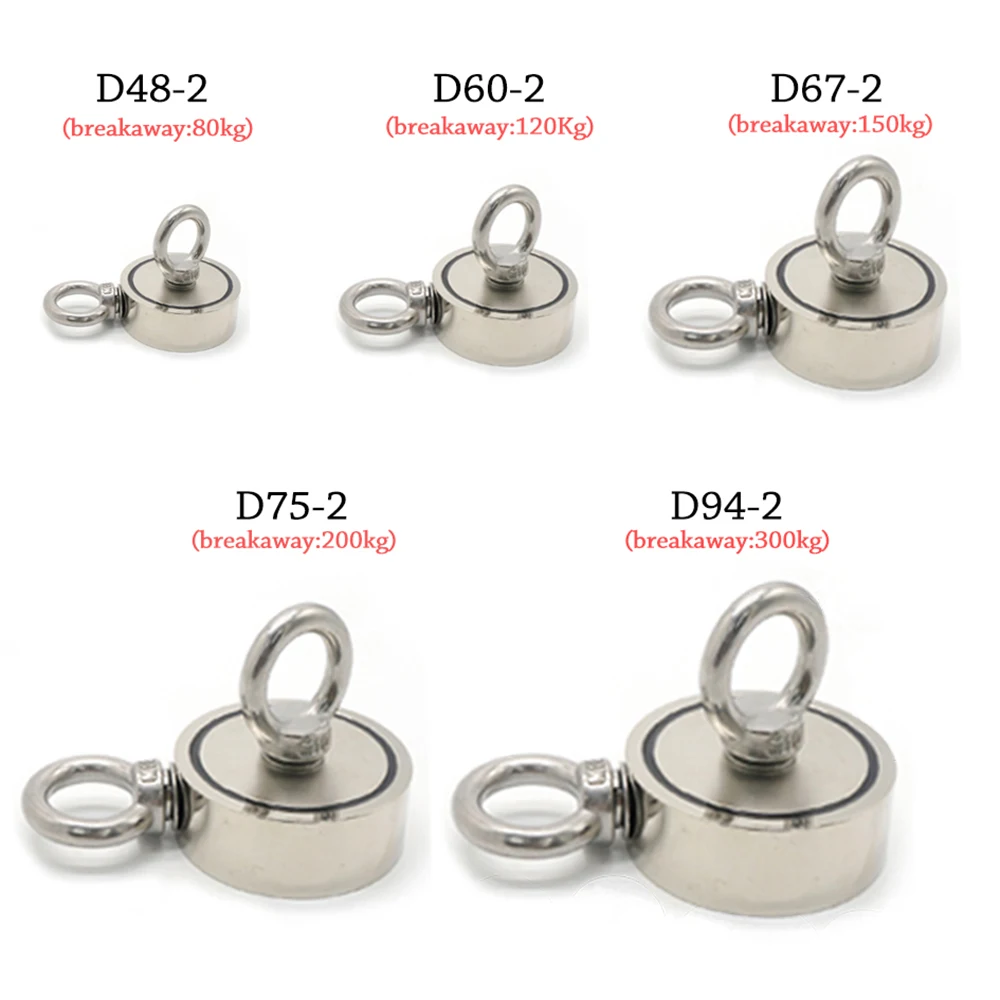 Super powerful -This double side fishing magnet is with the diameter of 2.5-12cm, adopt strong neodymium magnet for its base. It can offer 19-580kg pulling strength (each side 10-260kg)under ideal condition.