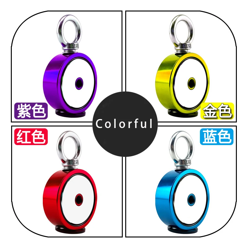 Colorful Super Strong Neodymium Magnets Heavy Duty Rare Earth Magnet with double sided Eyebolt for Salvage Magnetic Fishing