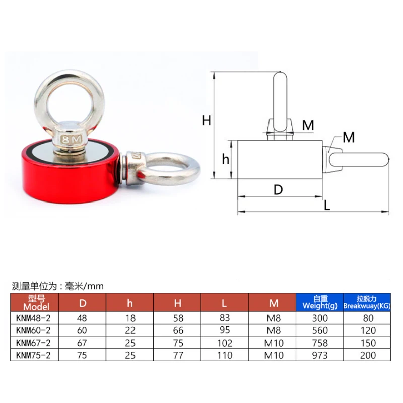 ▲SUPER POWERFUL – This fishing magnets is48/60/67/75mm in diameter, adopt strong neodymium magnet for its base. It can offer 80/120/150/200kg pulling strength under ideal condition.