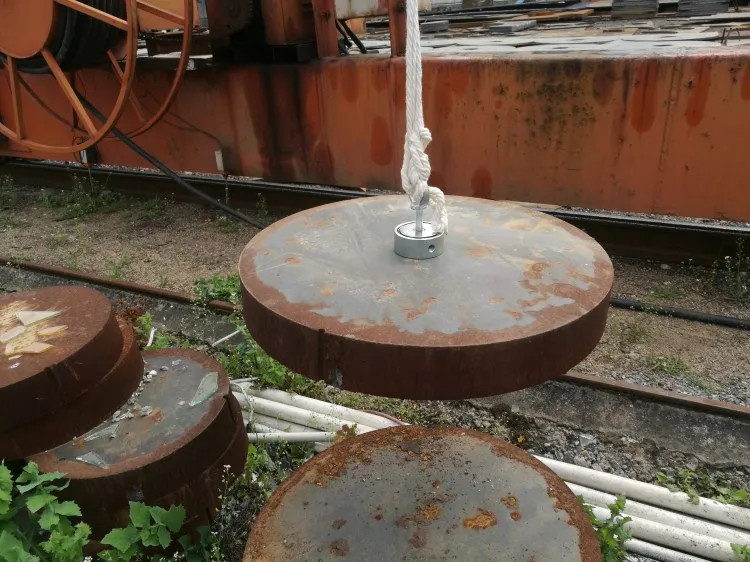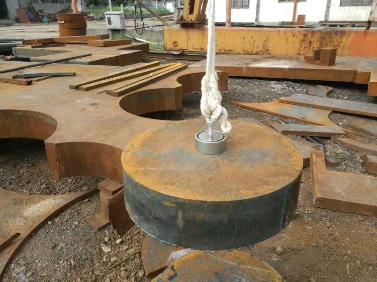 1.The magnetic pull force200kgwas tested using a computer-controlled tensile tester, it is the vertical pull-force which make the fishing magnet pull way from the steel plate30mmthickness under ideal condition.The actual pull force will vary mainly depending on the following variables:
